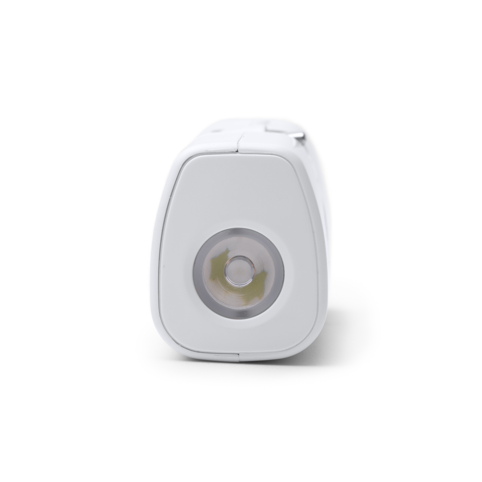 Batería externa de 5000 mAh realizada en ABS reciclado. Cuenta con función linterna en uno de los extremos y cable tipo C extensible incorporado. Puerto Tipo C de entrada y salida. Con indicador luminoso de porcentaje de batería y protector externo anticaídas
