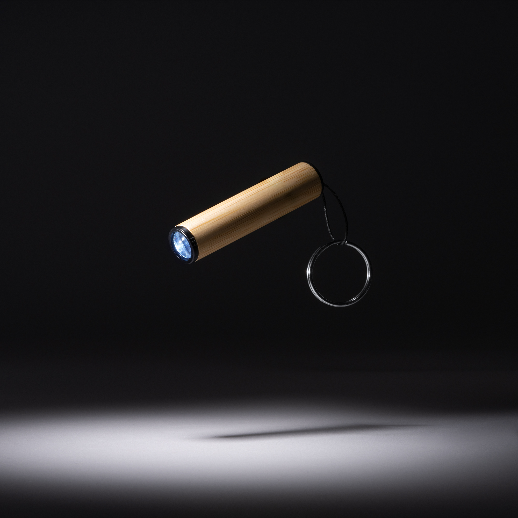 Llavero linterna con cuerpo elaborado en bambú, práctico, elegante y sostenible. Su diseño compacto y ligero que lo hace ideal para llevar en el bolsillo o colgarlo junto a las llaves. Incorpora una linterna LED que proporciona una iluminación brillante en situaciones de poca luz. Además, se incluyen tres pilas de botón LR41, lo que garantiza un uso inmediato.